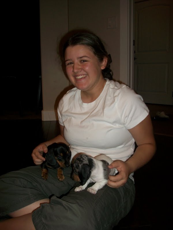 I went to my aunt and uncle's house to visit puppies.